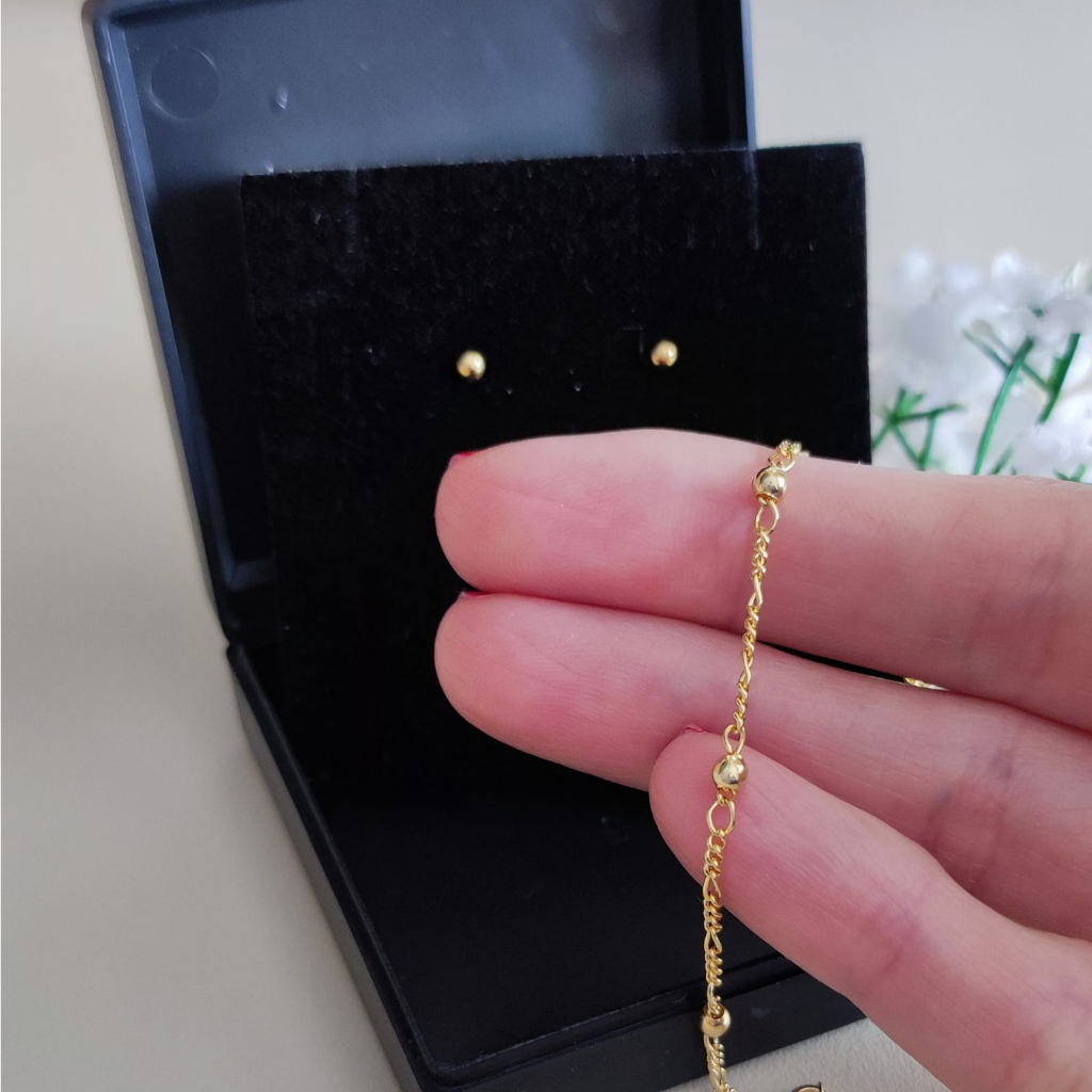 Kit pulseira + brinco infantil bebê bolinha dourada lisa banhada a ouro 18k