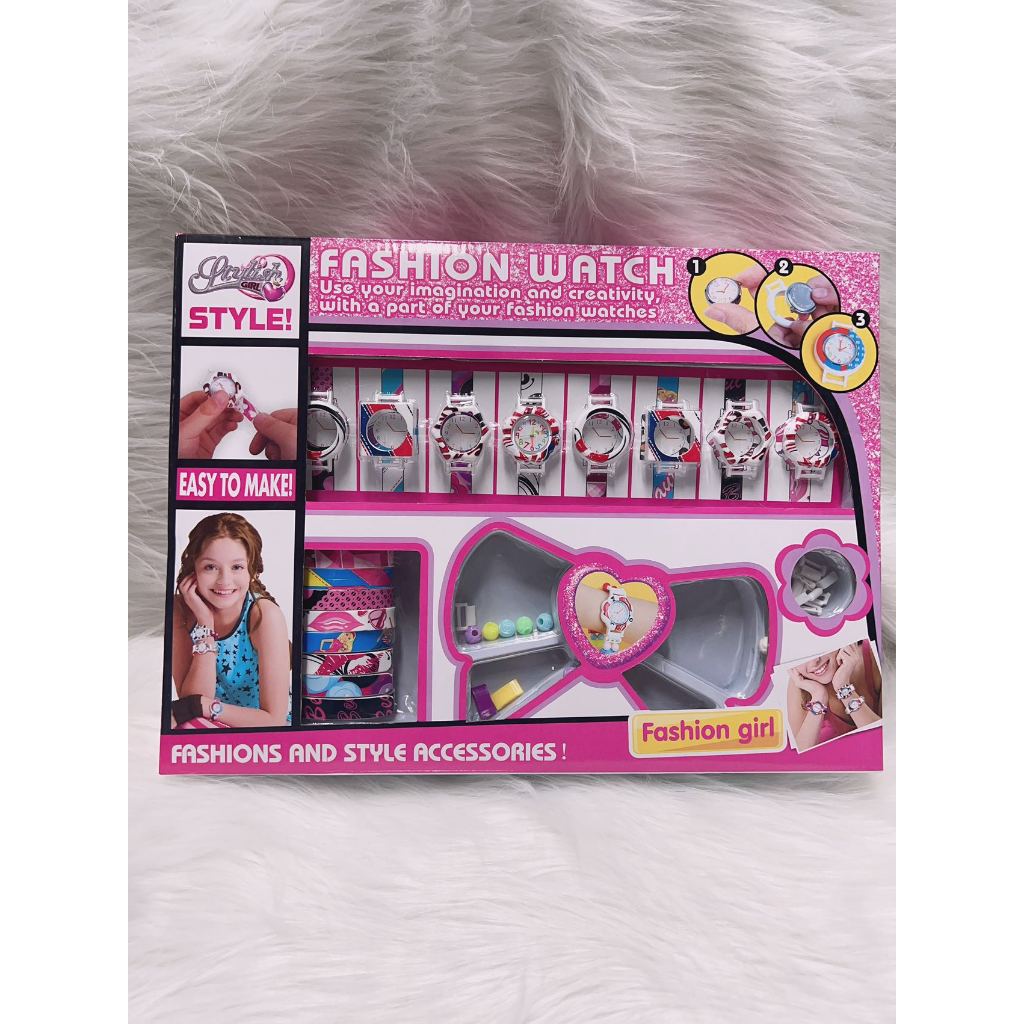 Kit relógio infantil e pulseira miçangas coloridas criança /relógio de verdade/WJ95