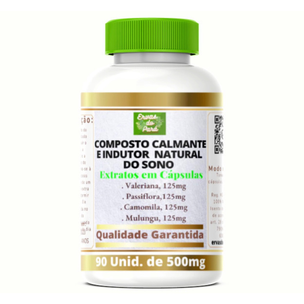 Composto Calmante de Ervas: Valeriana, Passiflora, Camomila e Mulungu - Bom Sono - 90 cáps, 500mg