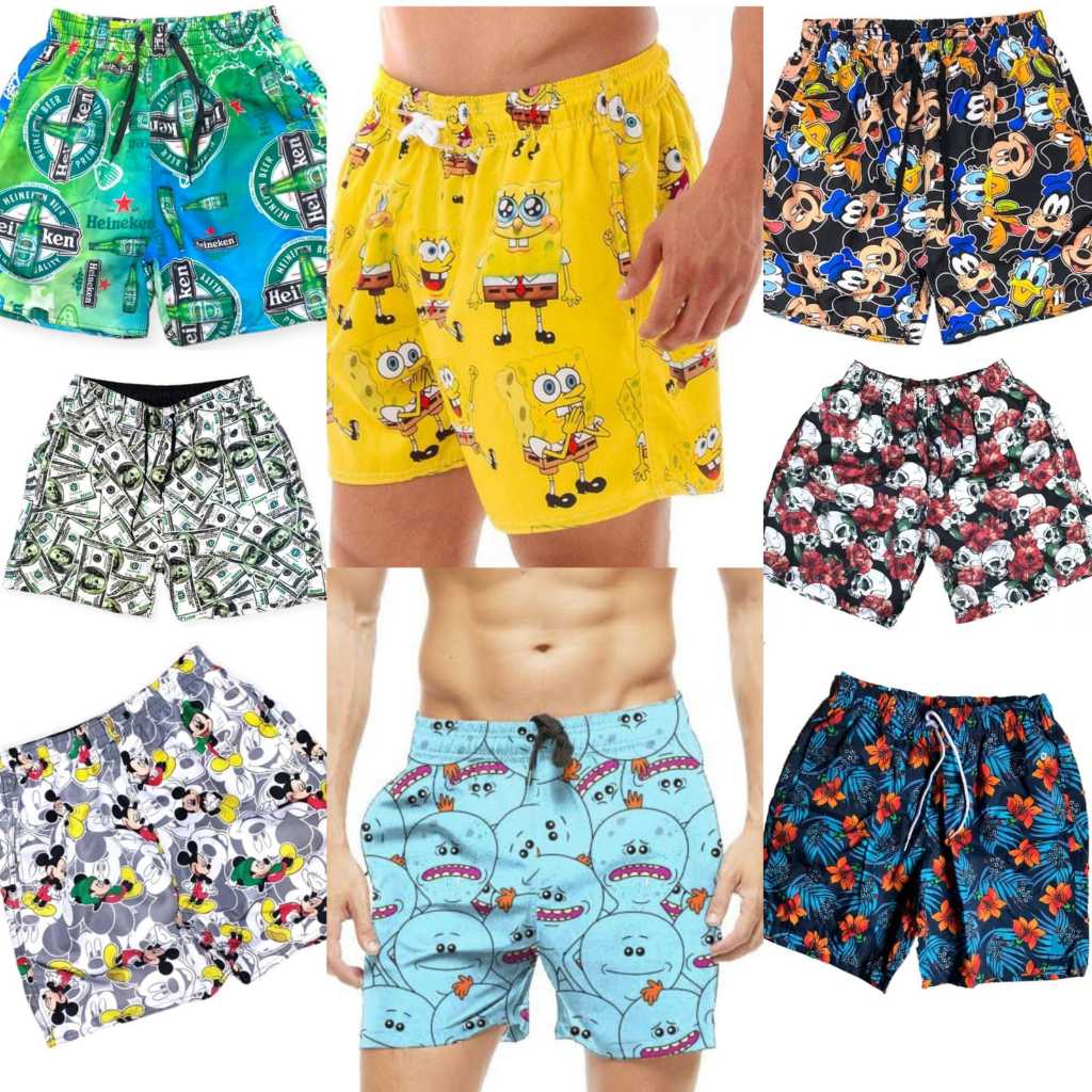 Kit 3 Shorts Tactel Masculinos Mauricinho Neymar Calção Estampados Moda Praia Leve e Confortável