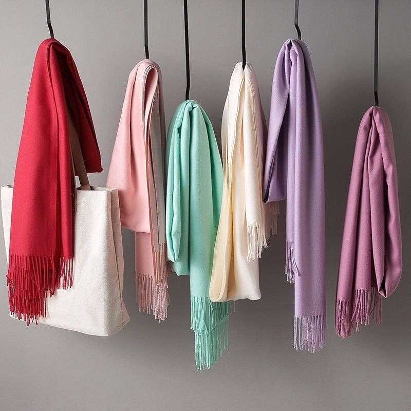 Lenço Grosso Cachecol de Lã Longo com Franjas Feminino Manta Lisa Echarpe Fofinho Pashimina Outono Inverno 75X180 - Estilo e Conforto Em Cada Fio