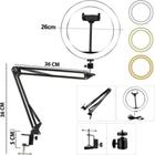 Ring Light Anel de Luz Led Grande 26cm Com Suporte Articulado de Mesa Tripé Tipo Braço Flexível Para Escritório Apoio Celular Live Vídeo Chamada Profissional
