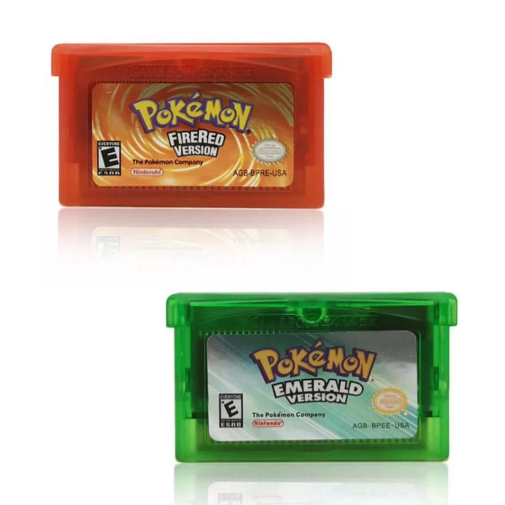 Kit com 2 Fitas Pokémon Emerald + Fire Red Cartuchos + Capinhas Jogos para Game Boy Advance Gba Nds