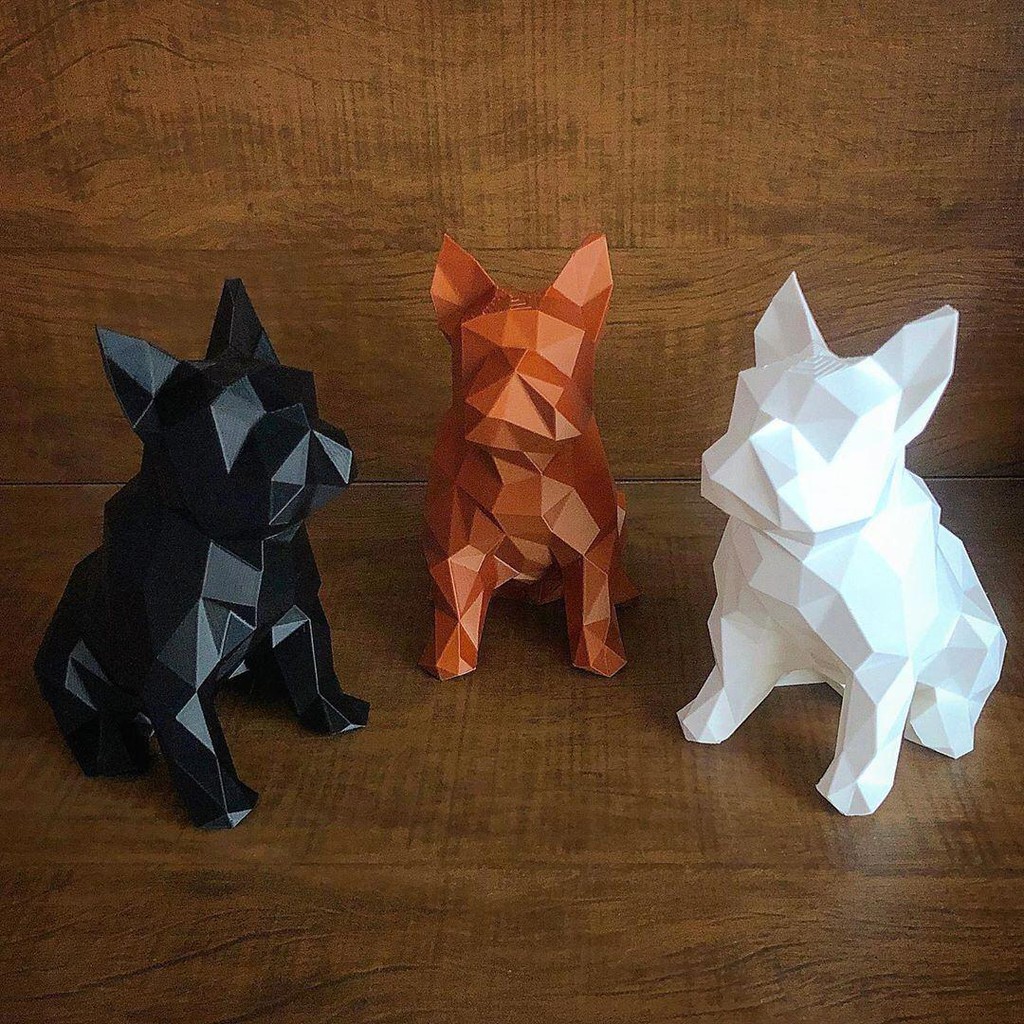 Estátua Bulldog Francês - Geométrica Low Poly Impressão 3D Decoração Interior - Diversas cores e tamanhos