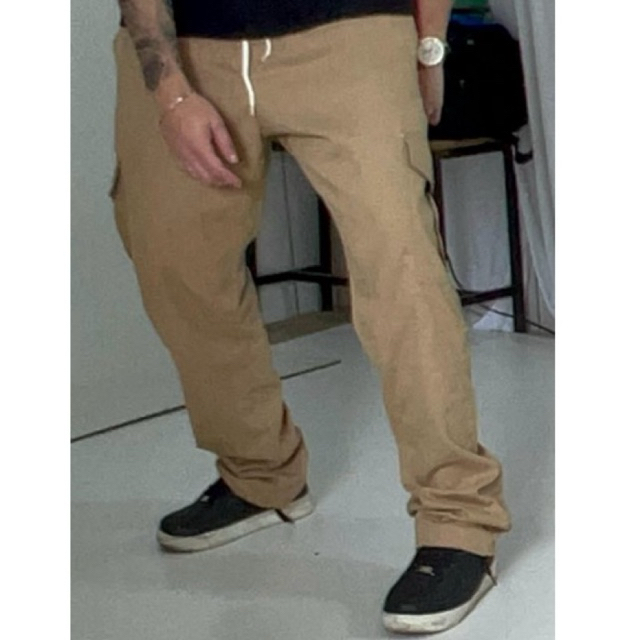CALÇA CARGO BEGE MASCULINA E FEMININA LARGA 6 BOLSOS JEANS OU SARJA UNISSEX ESTILO SKATE