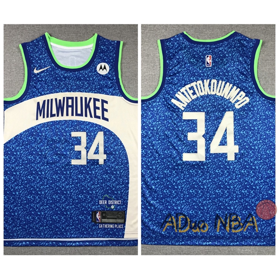 2023/24 Camisa Milwaukee Bucks #34 Giannis Antetokounmpo Blue Swingman City Edition De Basquete nba Swingman Jersey