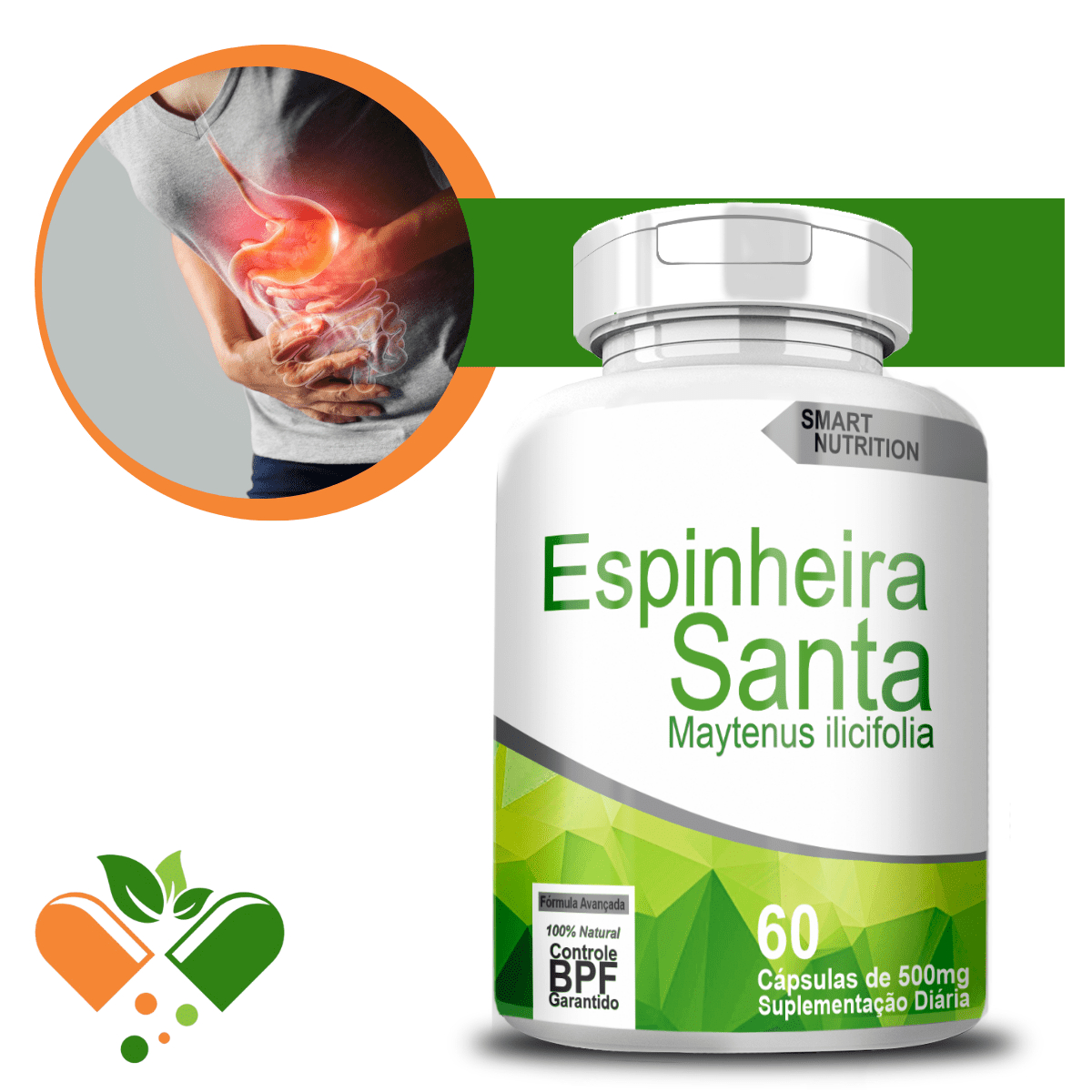 Espinheira Santa 100% Natural 2 potes 120 Cápsulas 500mg