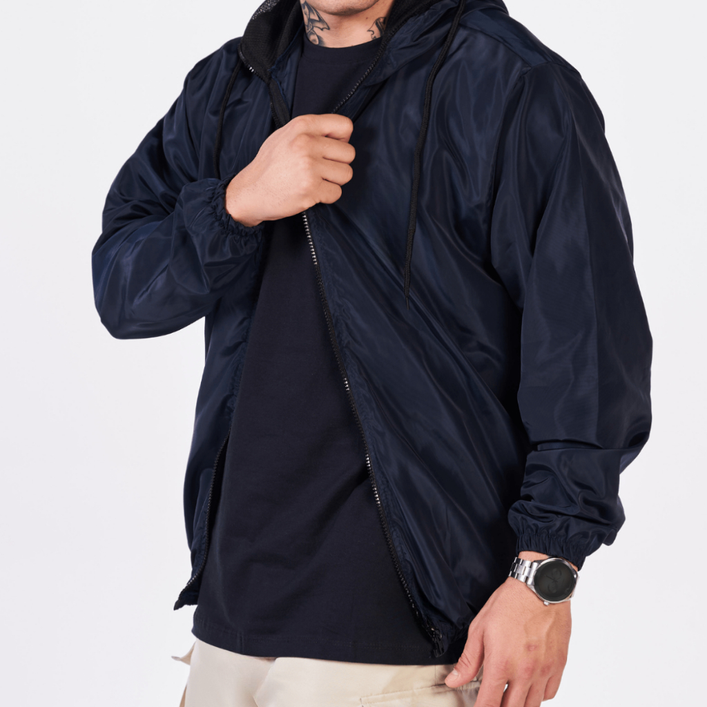 Jaqueta Corta Capuz Masculino, Corta-vento Preto, azul royal, cinza, branco