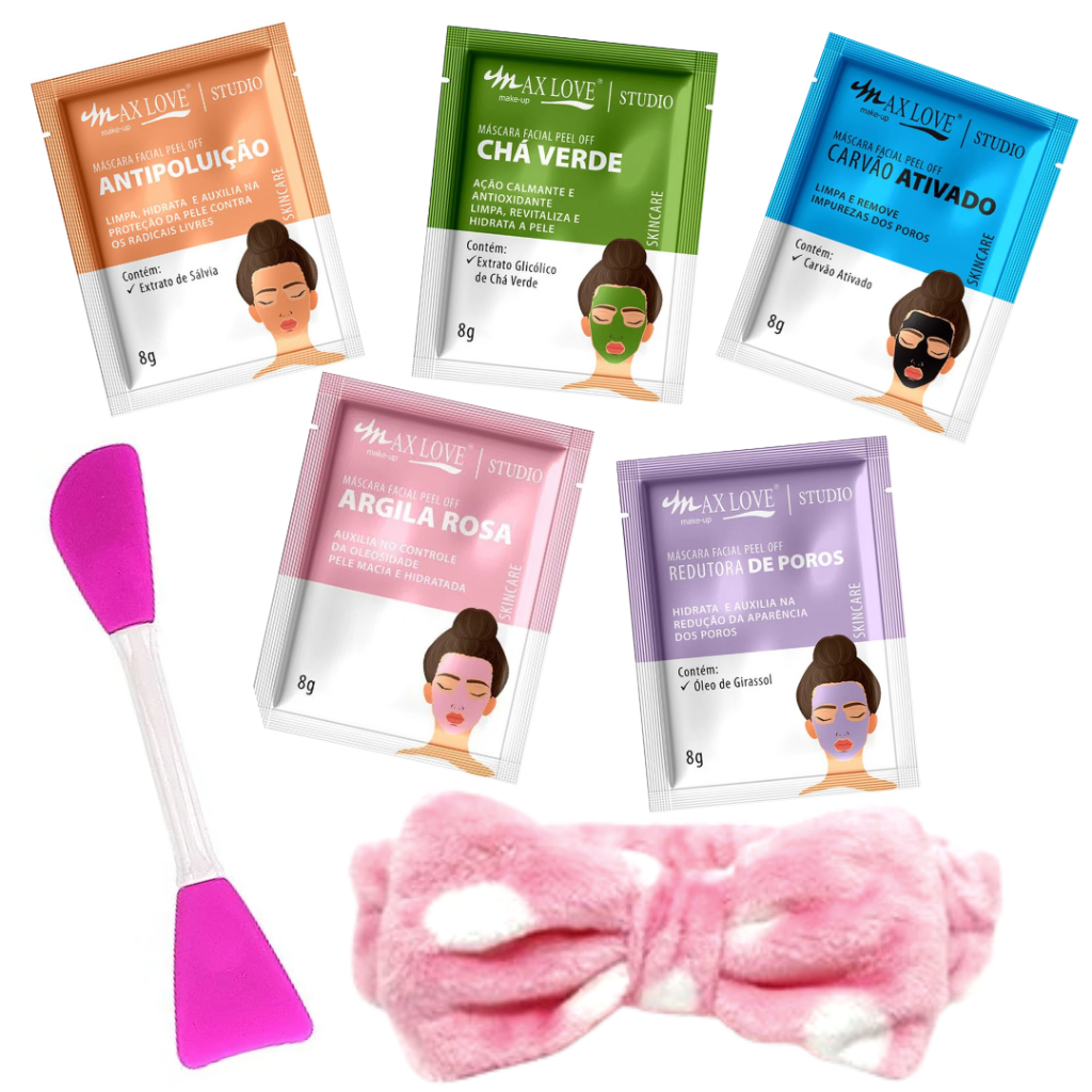 Kit com 50un Máscara Facial Max Love Sachê 8g cada para Skin Care e Limpeza de Pele