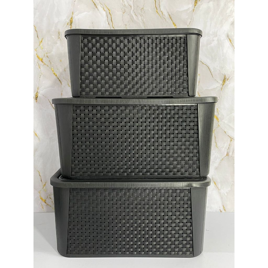 Kit Caixas Organizadoras 2 Unidades de 17 Litros E 1 de 8 Litros Preta C/ Tampa Rattan/Plasnew