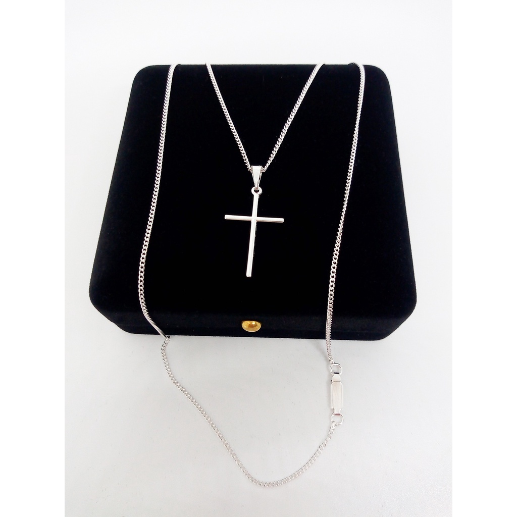 Correntinha Masculina 60cm Banhado A Prata 925 + Pingente Cruz Palito