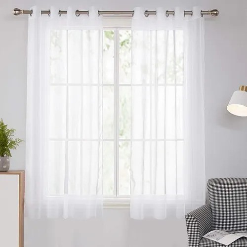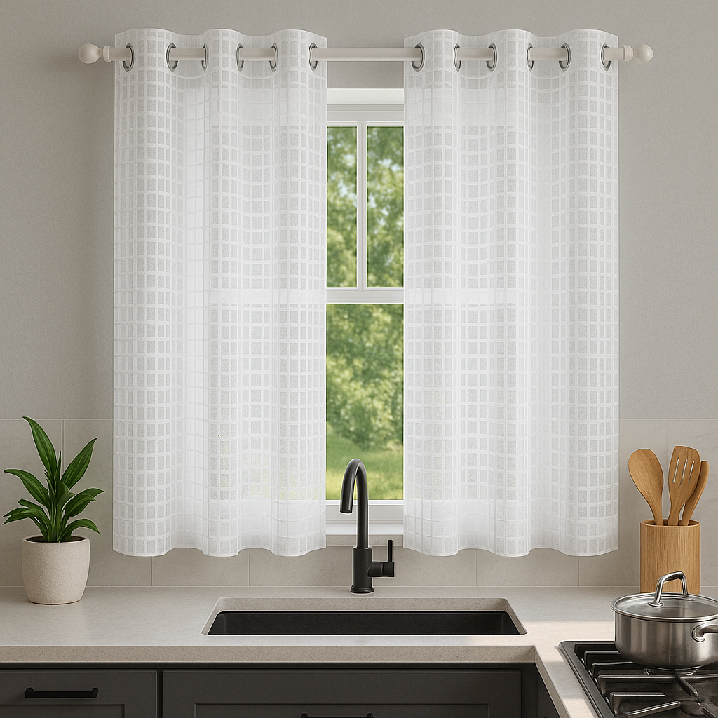 Cortina de Cozinha Voal Transparente Janela Branca Xadrez 2,20 x 1,40 Básica Tecido Leve Ilhós Cromado