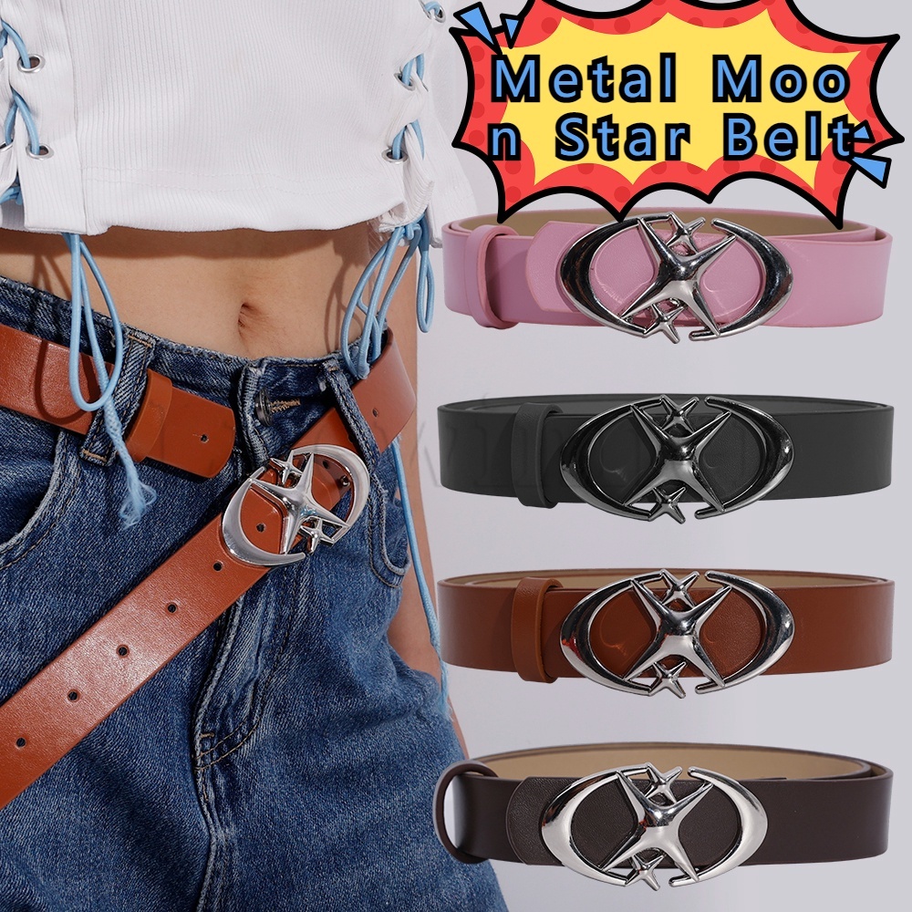Dopamina Calça Jeans Simples Decorativa Cinto Punk Gótico Duplo Lua Estrela Fivela Vintage Homens Mulheres Y2k Spice Girl Fashion Candy Cor Cruz Metal Pu Cintura De Couro