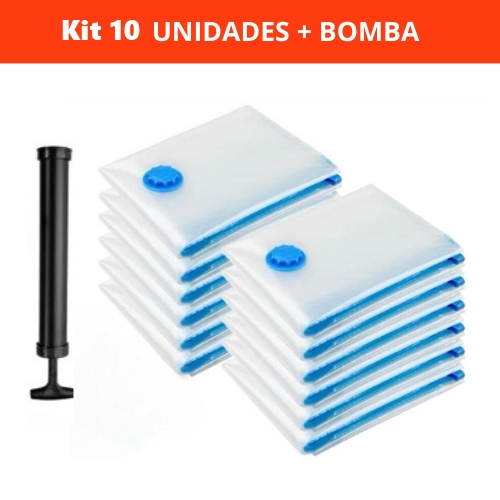 Kit 10 Saco A Vácuo Grande Organizador Edredom Coberto Mala Roupa De Cama + Bomba a Vacuo