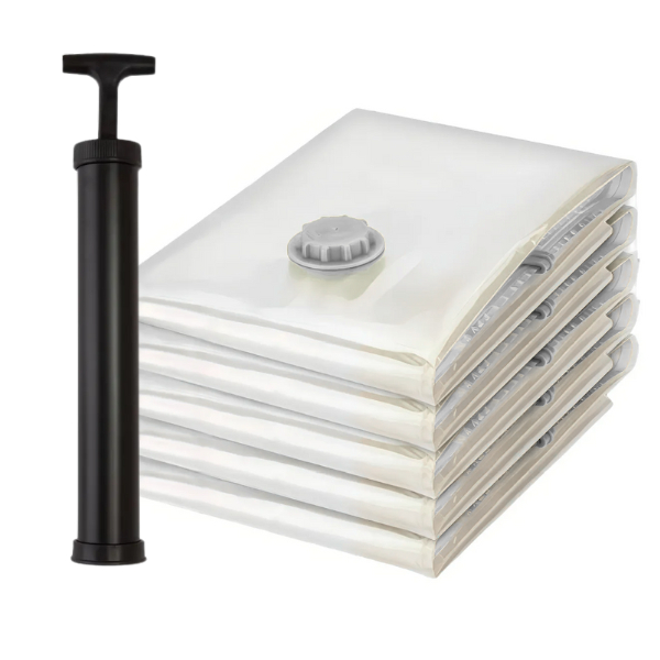 Kit 6 Saco a Vácuo Para Roupa Viagem Mala Edredon 50x60 Organizador de Guarda Roupa + Bomba