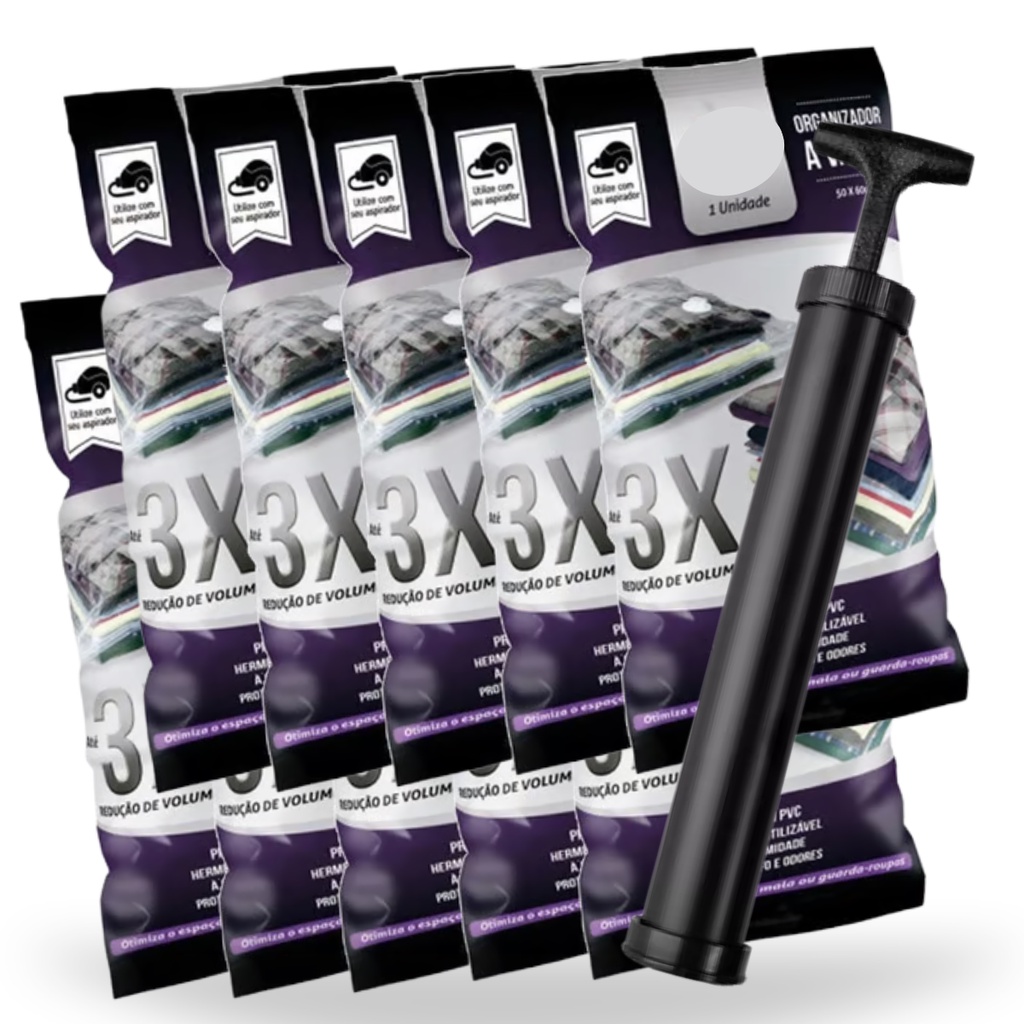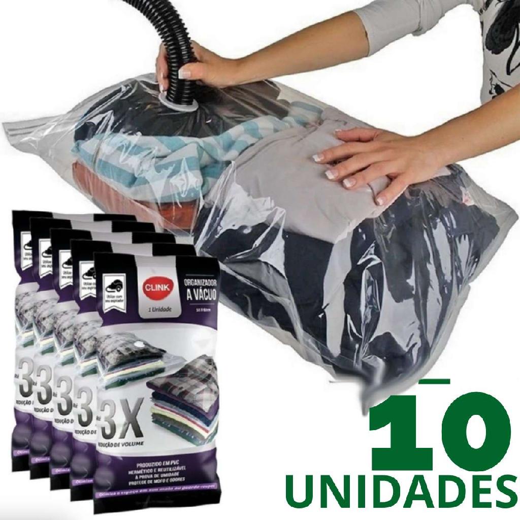 Kit 10 un Saco A Vácuo Viagem Mala Roupa Organizador Clink - 50 X 60 cm + Bomba