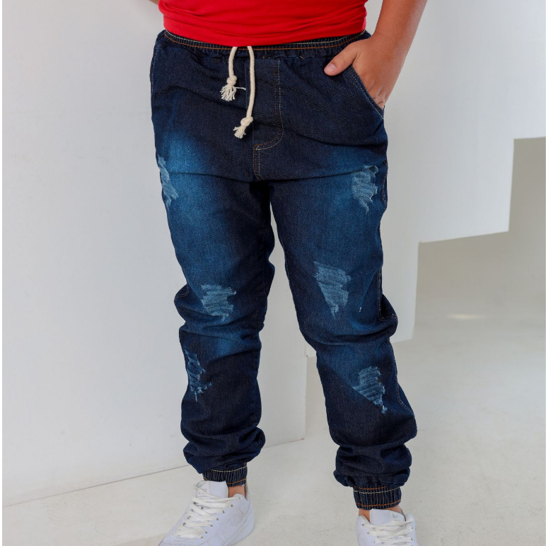 Calça Jogger de Menino Jeans Infantil e Juvenil com Elástico na Cintura e nos Tornozelos nos Tam 4 a 16