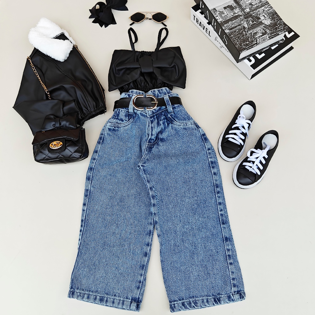 calça jeans wide leg feminina infantil juvenil 4 6 8 10 12 14 e 16 Anos