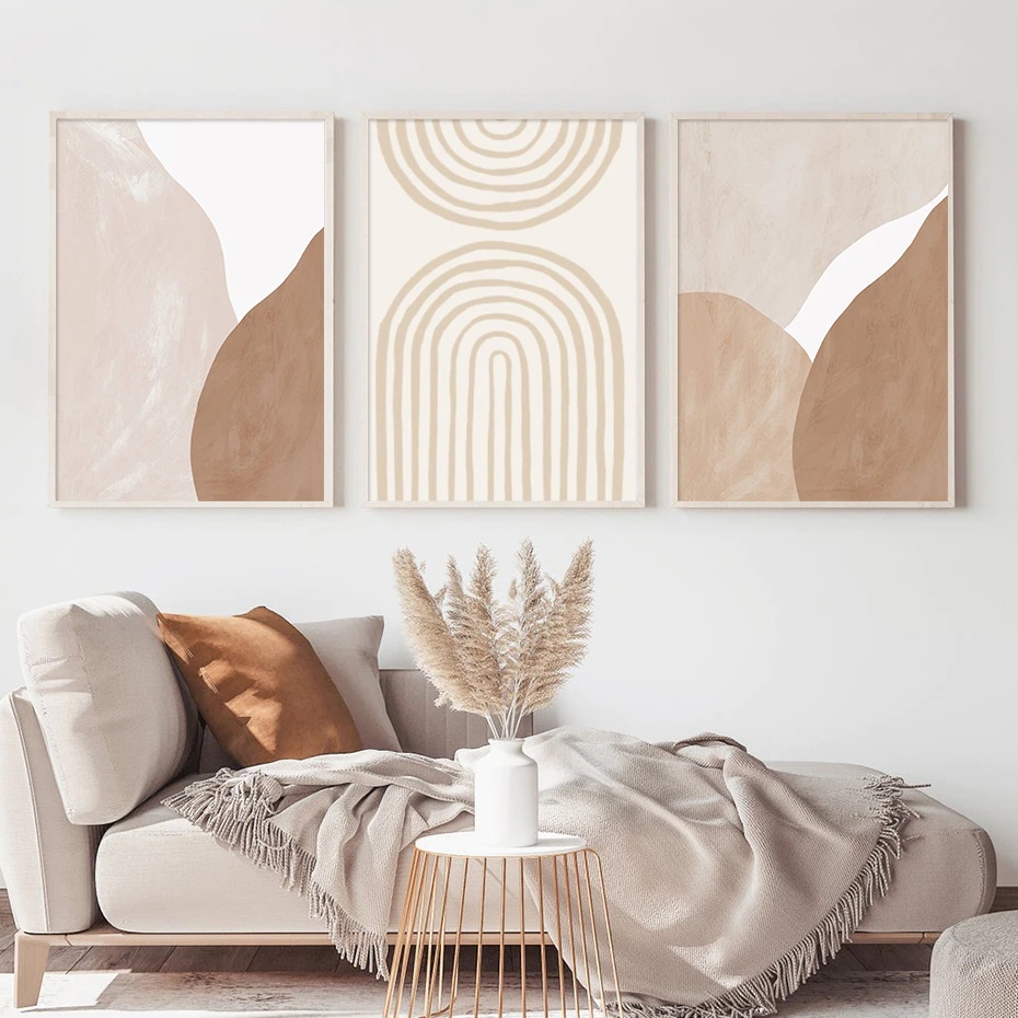 Quadro decorativo 3 peças Abstrato boho bege terracota moderno abstrato linhas geométrico decoração para casa sala quarto hall interiores