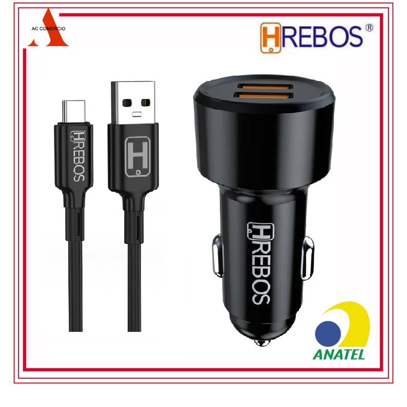 Carregador Veicular Turbo 2x Usb 3.1A Com Cabo Tipo C