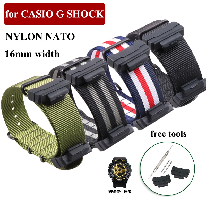 G SHOCK NATO Nylon Pulseira De Relógio Com 16mm Resina Adaptador Para Choque GA100 GA200 GLX5600 G5600e DW5600/5610 DW6900 G8900 GLS100