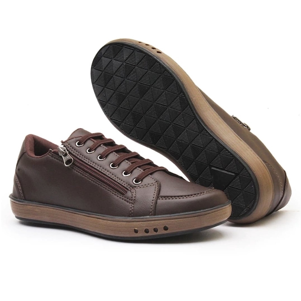 Sapatênis Masculino Pegada Couro Casual Com Ziper Anti stress Moderno