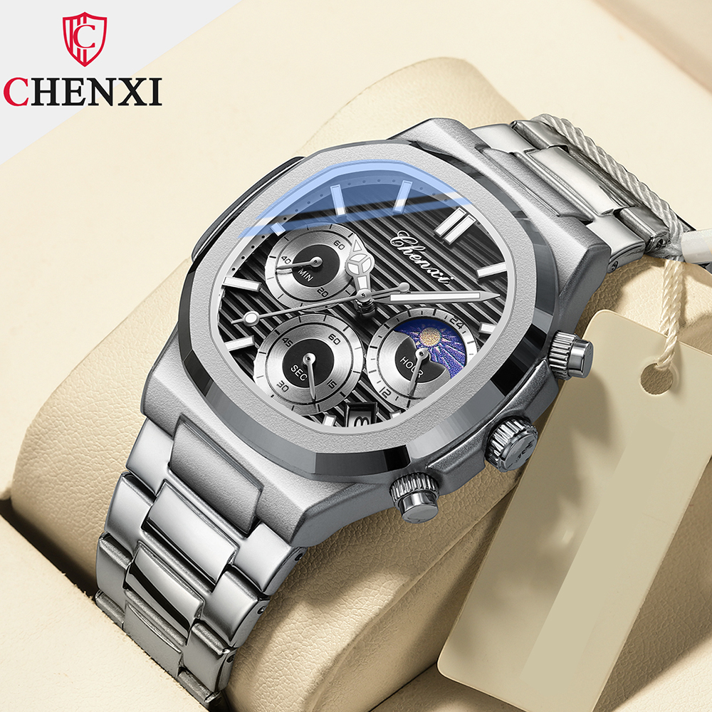2023 Novo Relógio Masculino CHENXI Moda Aço Inoxidável Fase Da Lua Cronógrafo Quartzo Relógios De Pulso Para Homem Luxo