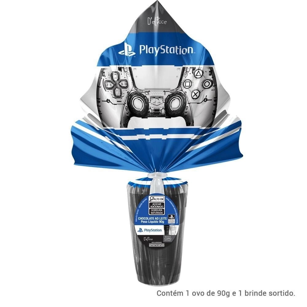 Ovo de Páscoa Playstation vem com Copo preto temático do Playstation + ovo de chocolate 90g