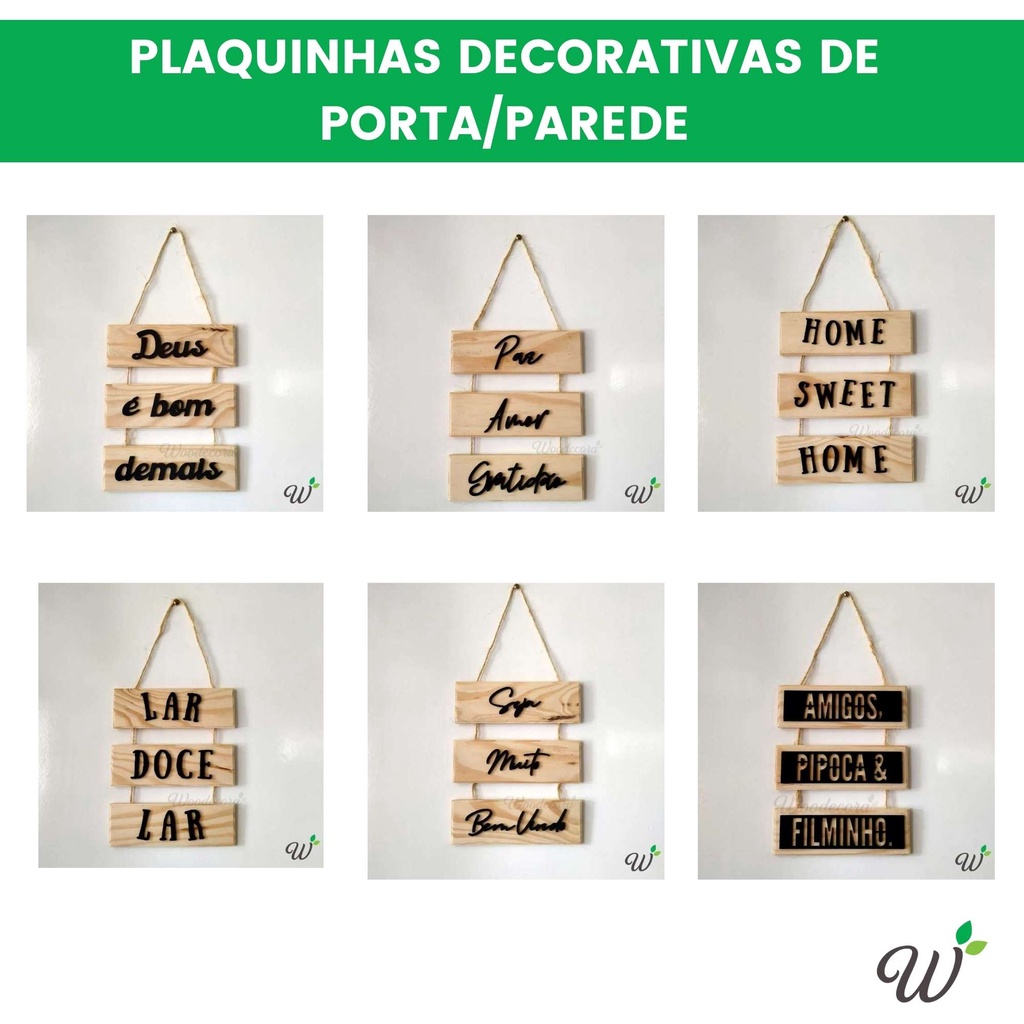 Placa Decorativa de Porta em Madeira Pinus - Vários Modelos/Trio para Pendurar