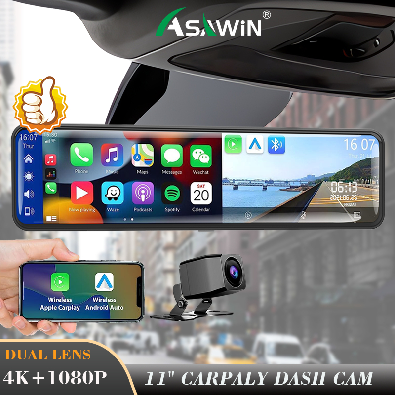 Asawin CM11 Wireless Carplay Android Câmera De Visão Frontal E Traseira Para Carro 11 Polegadas Tela Sensível Ao Toque IPS Espelho Retrovisor Controle De Voz Bluetooth Chamada Transmissor FM