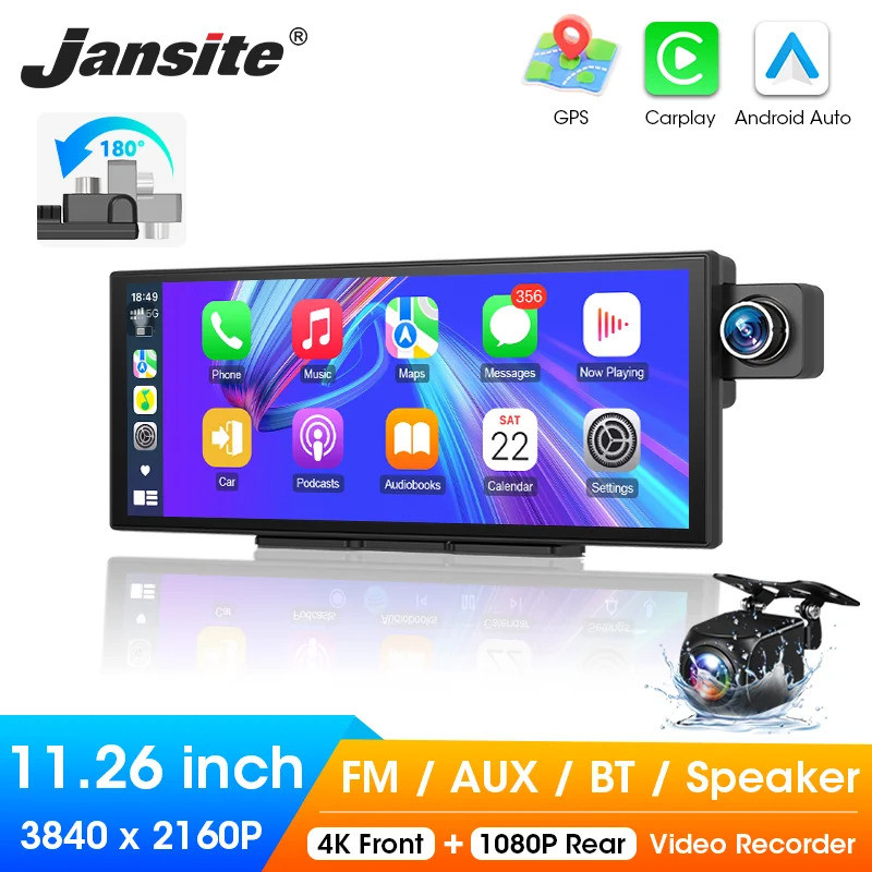 11,26 polegadas 4K Dash Cam 3840*2160P DVR de Carro Espelho Gravação de Vídeo Carplay Sem Fio & Android Auto Navegação G