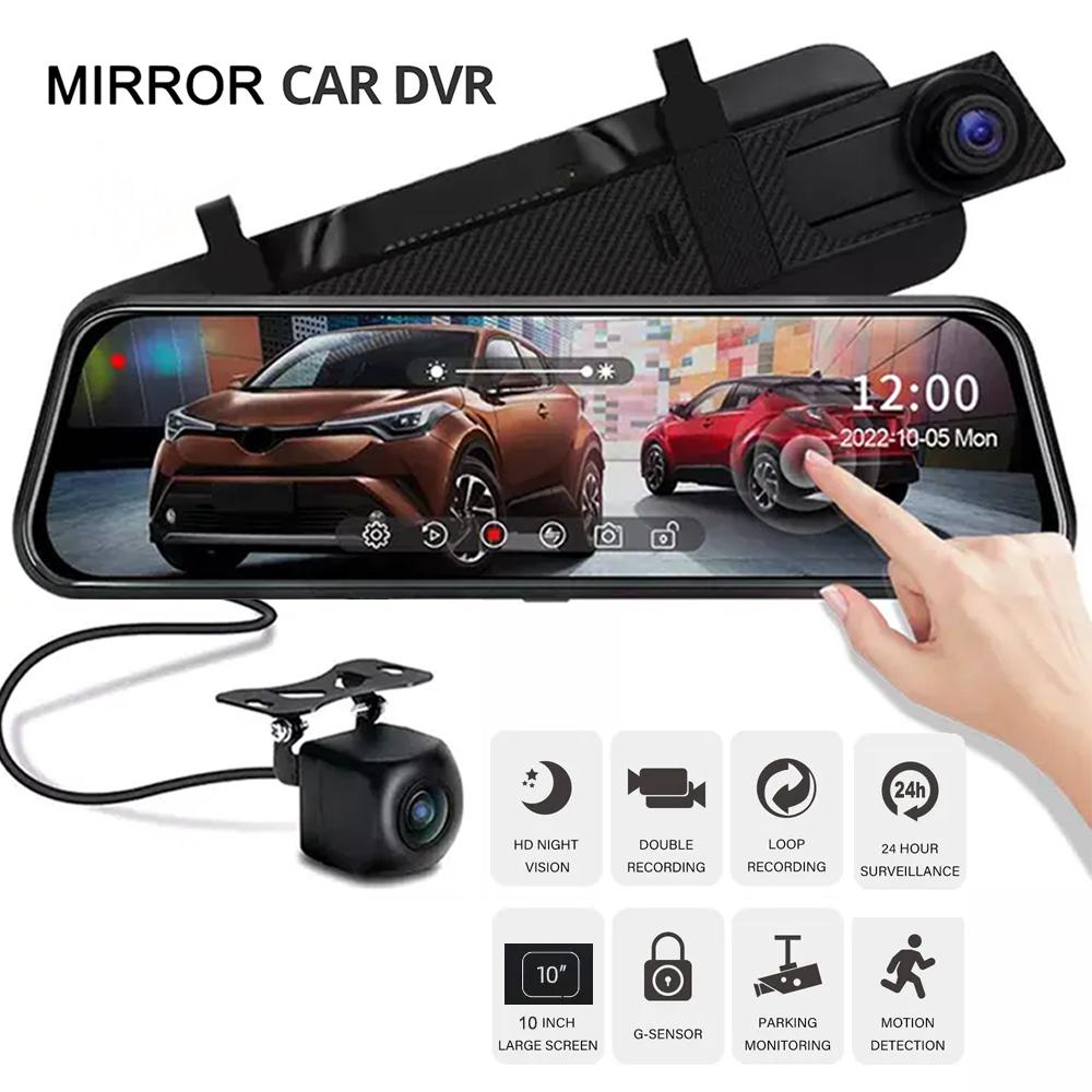 DashCam De Espelho Retrovisor De 10 Polegadas Com Tela Cheia Para Câmera De Carro Dvr De Lente Dupla Gravador De Acionamento Da Dianteiro E Traseiro HD 1080P Touch Inverter Visão Traseira 24 Horas Noturna Em Modo De Estacionamento