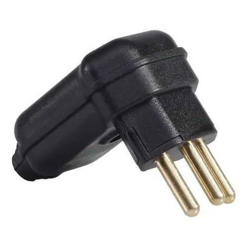 Plug Plugue Macho 90 Graus + Tomada Femea 3 Pinos 10a Prensa Cabos Preto Margirius