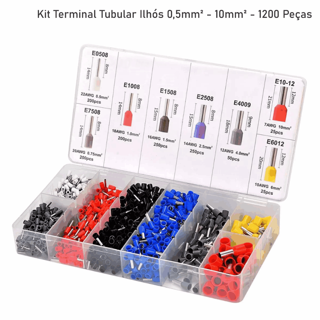 Kit 1200 Terminais Elétricos Ilhós Tubular 0,5mm Até 10mm - KIT COMPLETO