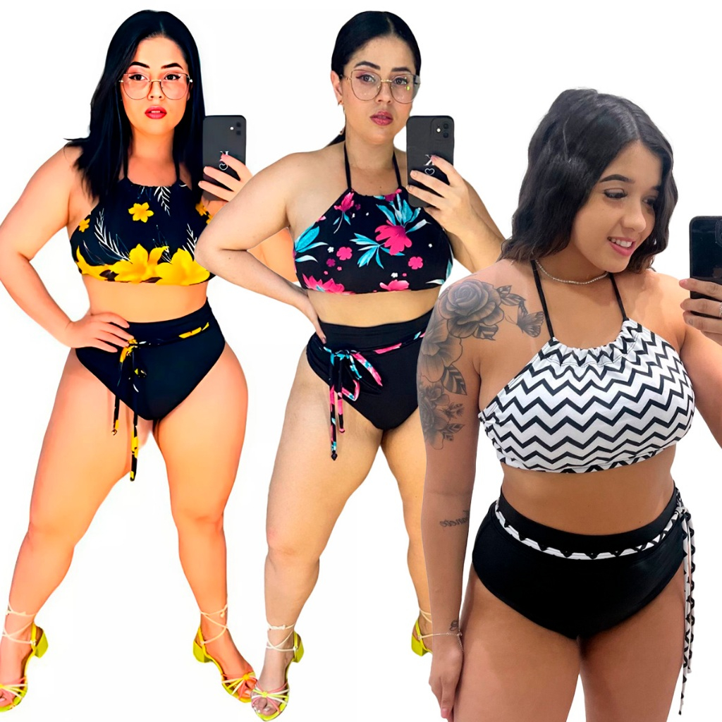 Biquíni Plus Size Hot Pant Cintura Alta Com Forro e Bojo