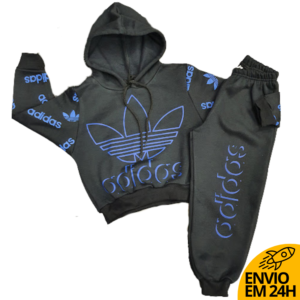 Roupa Infantil Conjunto Criança Masculino Menino de Inverno Calça + Casaco Preto Azul (Moleton Flanelado) Barato Pronta Entrega