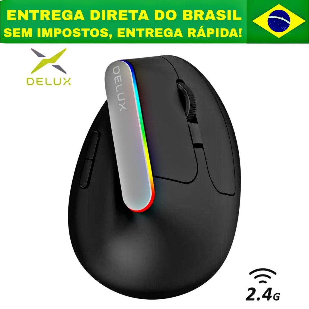 Mouse Ergônomico Delux M618c RGB Bluetooth Vertical Sem Fio 6 Botões, 4000Dpi