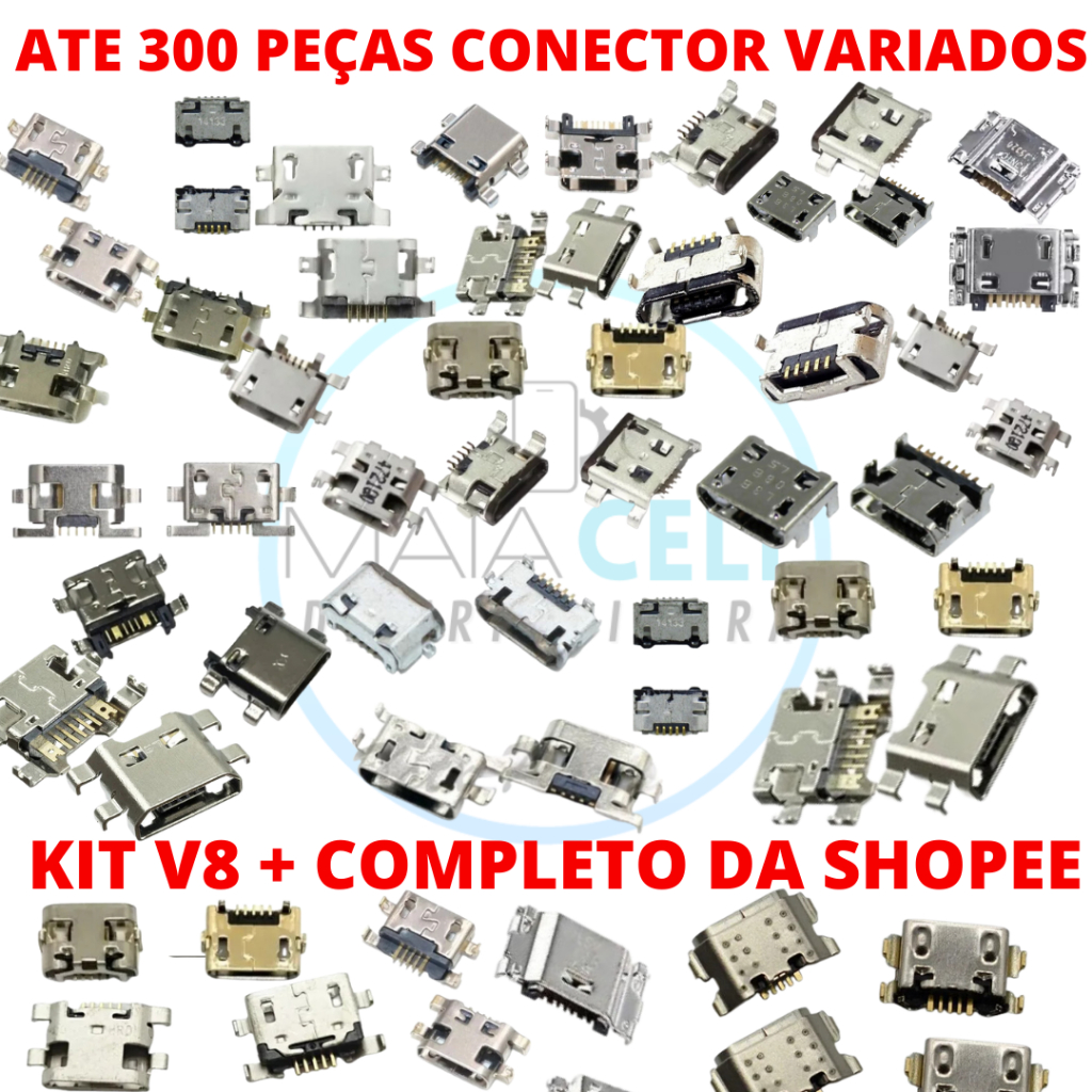 kit até 300 conector de carga micro usb v8 modelos variados manutenção assistência técnica PROMOÇÃO