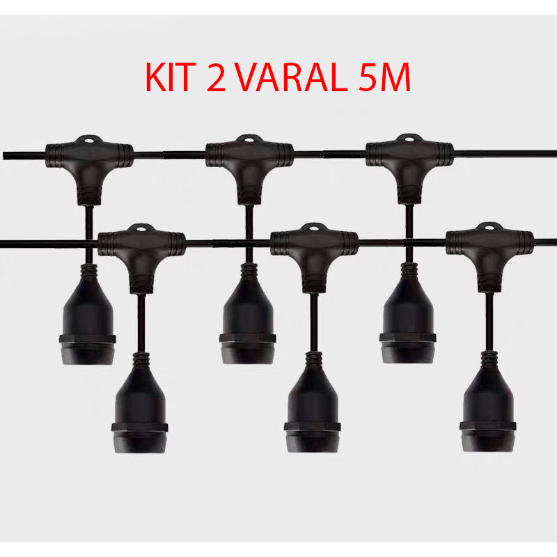 Kit 2 Varal de Luzes Cordão Fio de Iluminação 5 Metros 10 Soquetes