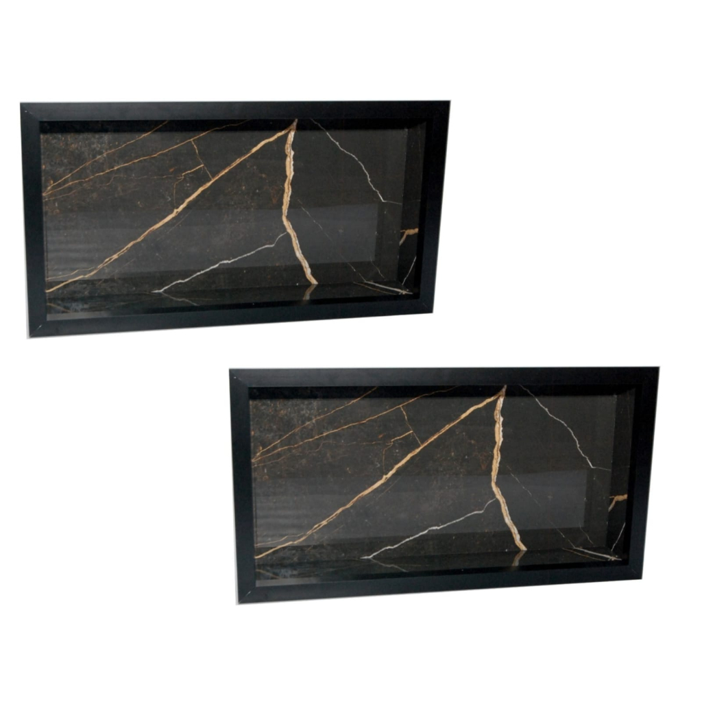 Kit 2 Nichos de Embutir Preto em Porcelanato Prateleira Porta Shampoo