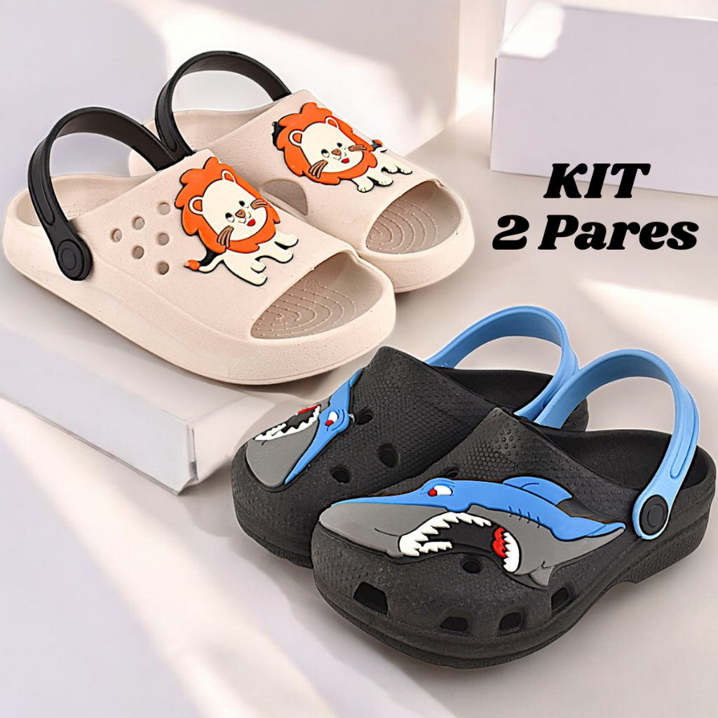 Kit 2 Pares Tênis Infantil Menino e Sandália Babuche Confortável