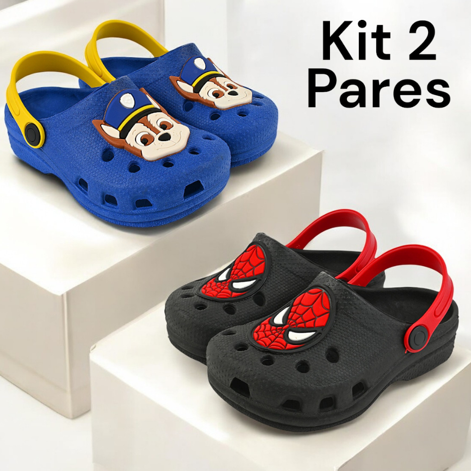 Kit 2 Pares Sandálias Infantil Menino Babuche Confortável Papete Escolar Volta as Aulas