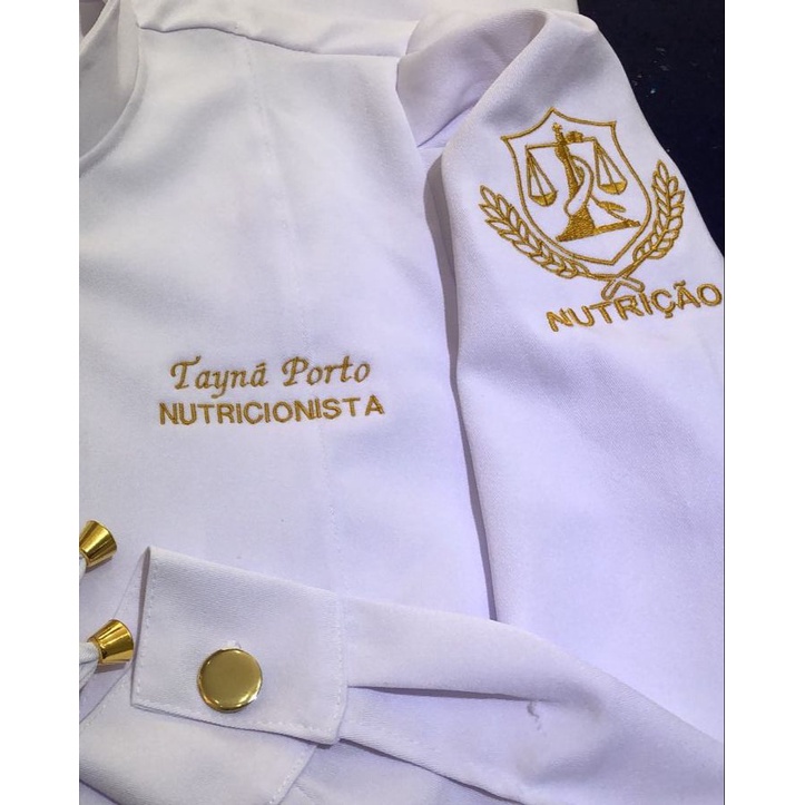 Jaleco tecido Oxford bordado personalizado nome e profissão