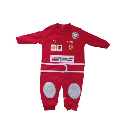 Macacão Ferrari para bebê. Feito em suedine 100% algodão. Com detalhes em 3D. Perfeito para mesversario e aniversario de 1 ano.