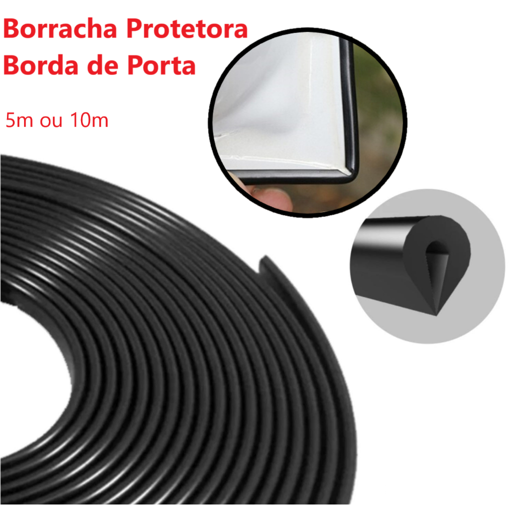 M9955 - Protetor De Bordas Anticolisão de Borracha Portas Veiculo Universal Carro - 5 / 10 Metros - Preto
