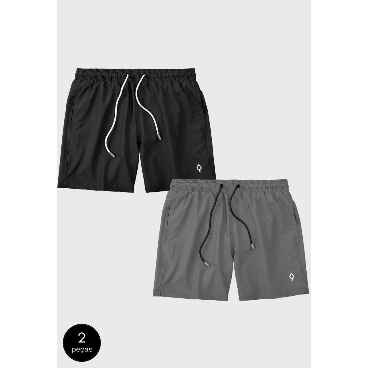 Kit 2 Shorts Bermudas Praia Liso Lisa Masculino Tactel Básico Moda Básica Preto/Cinza