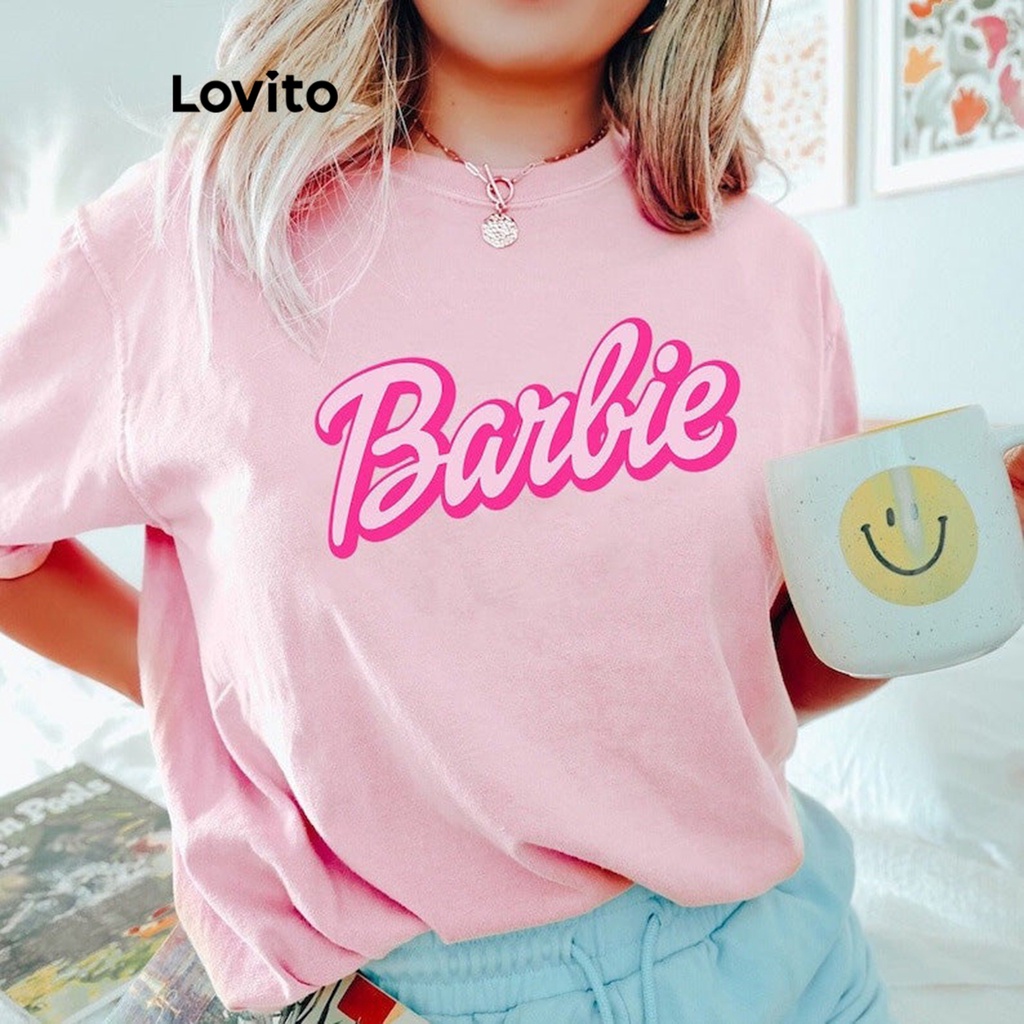 Lovito Camiseta Básica com Letras para Mulheres LNE21182 (Rosa)