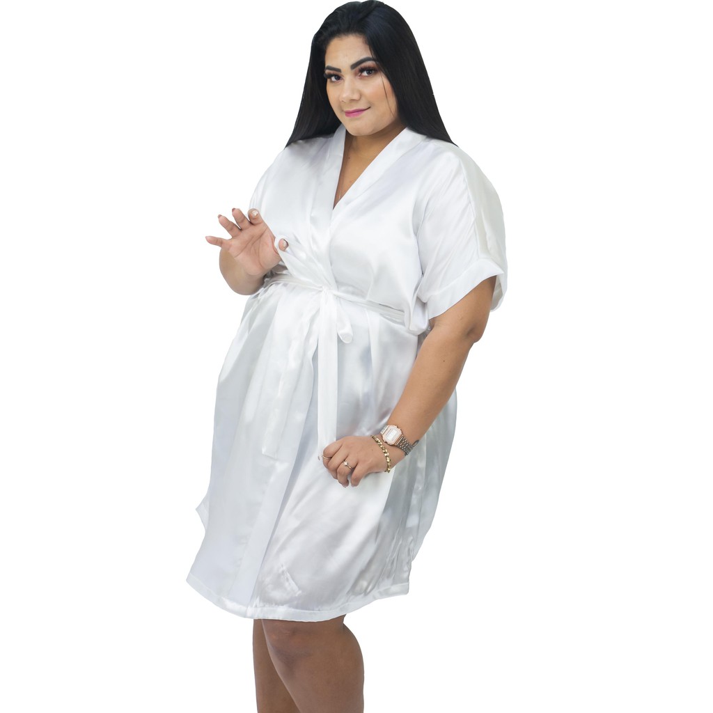 Robe Roupão de Cetim Feminino Plus Size Tamanho 48 50 52 e 54 Cor Branco