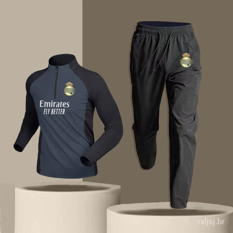 Uniformes de treinamento de futebol, roupa esportiva de corrida masculina de secagem rápida respirável de 2 peças, calça de manga comprida com meia zíper
