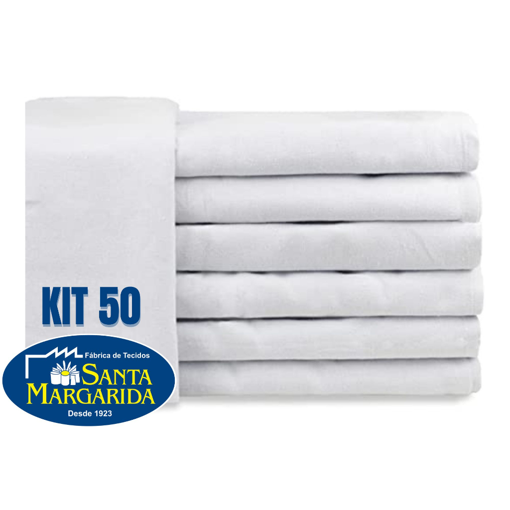 Kit 50 Panos Prato Pé de Galinha Com Bainha Liso Branco - Santa Margarida